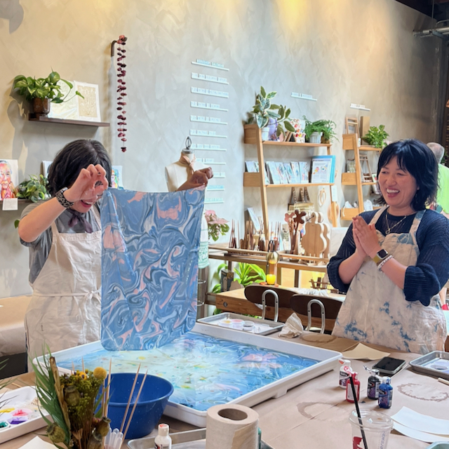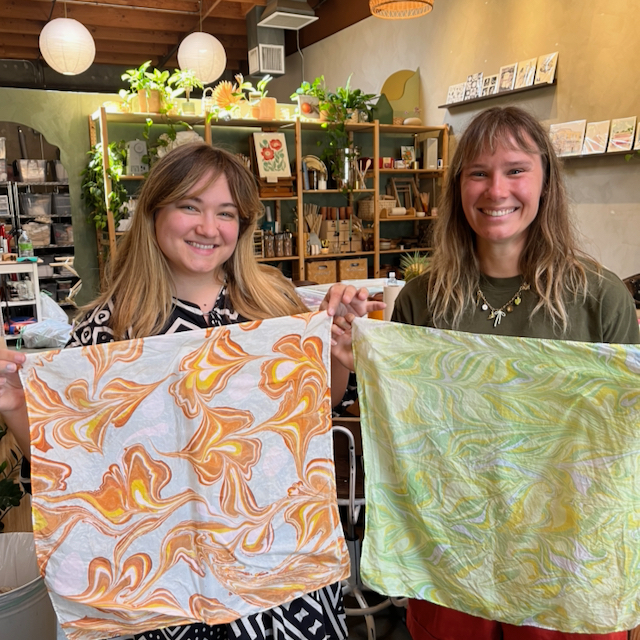 Each participant will leave with one marbled silk scarf, as well as practice pieces.