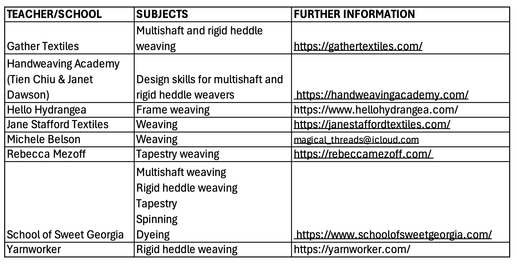 SCHG offers a wide range of weekend workshops, as well as weave-a-thon meetups where members provide informal tips. Several times a year we offer a one-day introductory rigid-heddle weaving classes, "Weave a Scarf in a Day."